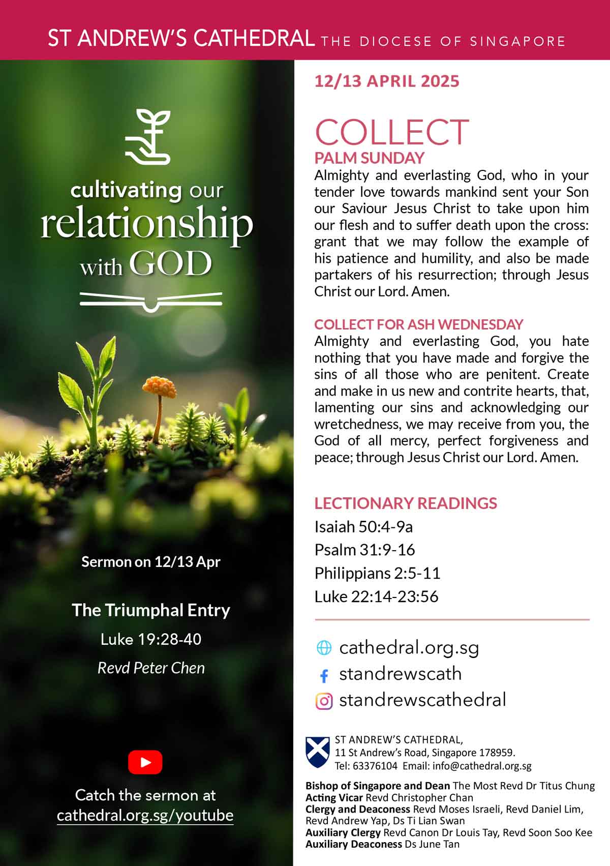Palm Sunday Download PDF https://cathedral.org.sg/250413-palm-sunday Fifth Sunday of Lent Download PDF https://cathedral.org.sg/250406-fifth-sunday-of-lent Past Bulletins 20 Apr | Easter Sunday 13 Apr | Palm Sunday 6 Apr | Fifth Sunday of Lent ARCHIVES 2025 December 2025 November 2025 October 2025 September 2025 August 2025 July 2025 June 2025 May 2025 April 2025 March 2025 February 2025 January 2024 December 2024 November 2024 October 2024 September 2024 August 2024 July 2024 June 2024 May 2024 April 2024 March 2024 February 2024 January 2023 December 2023 November 2023 October 2023 September 2023 August 2023 July 2023 June 2023 May 2023 April 2023 March 2023 February 2023 January 2022 December 2022 November 2022 October 2022 September 2022 August 2022 July 2022 June 2022 May 2022 April 2022 March 2022 February 2022 January 2021 December 2021 November 2021 October 2021 September 2021 August 2021 July 2021 June 2021 May 2021 April 2021 March 2021 February 2021 January 2020 December 2020 November 2020 October 2020 September 2020 August 2020 July 2020 June 2020 May 2020 April 2020 March 2020 February 2020 January 2019 December 2019 November 2019 October 2019 September 2019 August 2019 July 2019 June 2019 May 2019 April 2019 March 2019 February 2019 January